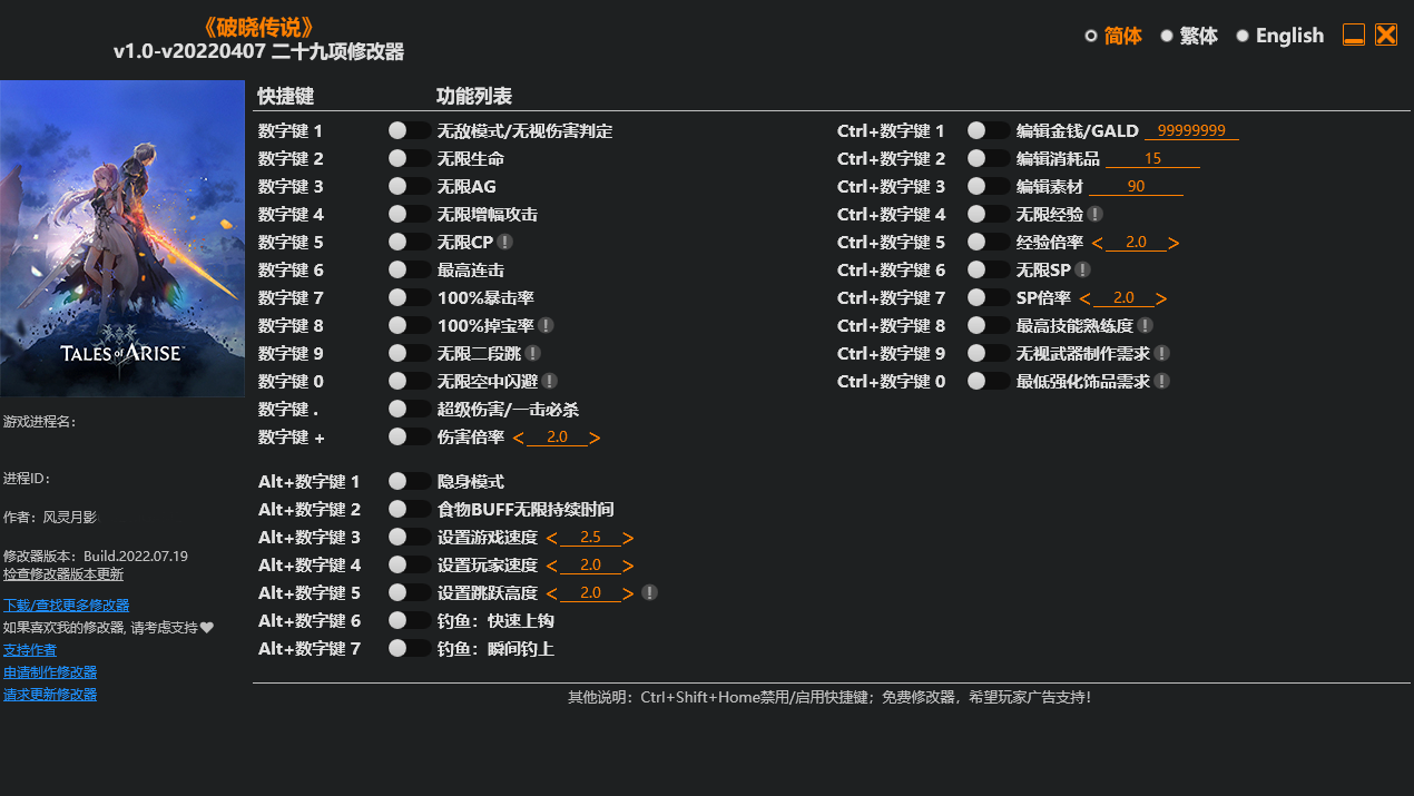 破晓传说修改器最新让玩家在游戏中感受飞翔的感觉。通过修改器,实现无限二连跳,得到无限的空中闪避,感受征服天空的酷爽玩法。一共有二十九种功能,隐身模式,快速钓鱼,一击必杀,无限cp,相当强大。喜欢的小伙伴,点击下载感受吧。