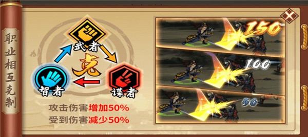 在《暗影剑客》里,角色被划分为三类,分别是谍者(标志为红剪刀)、武者(标志为金拳头)以及智者(标志为蓝手掌)。这三个职业之间呈现出类似石头剪刀布那样简洁明了的克制关系。具体而言,武者克制谍者,谍者克制智者,而智者又能克制武者。一旦出现职业克制的情况,克制职业对被克制职业所造成的伤害会提升50%,同时受到来自被克制职业的伤害则会减少50%。