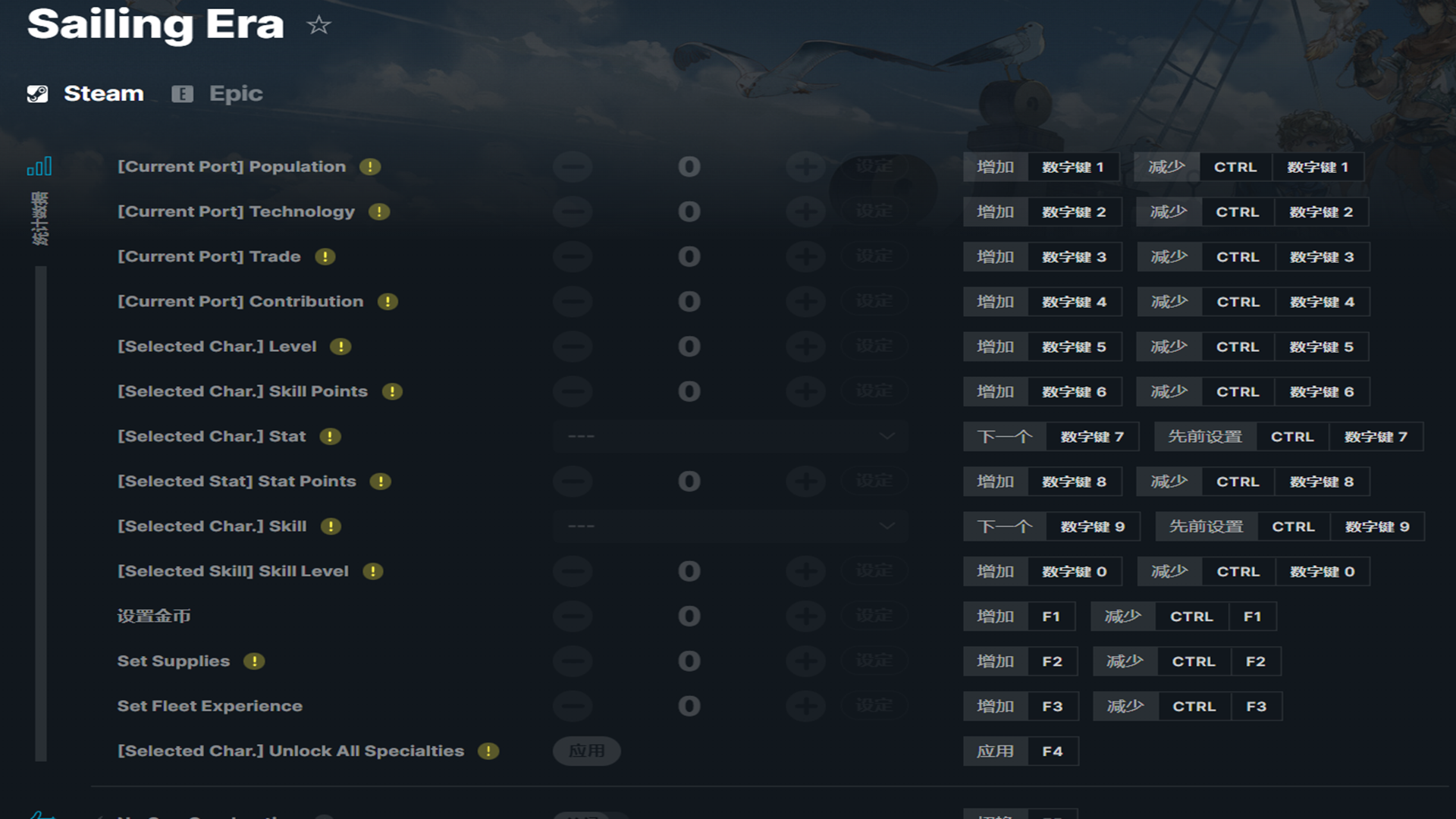 风帆纪元二十六项修改器为玩家在大航海时代,拥有足够的科技势力,足够的财富力量,在这发现新大陆中占据先手,得到庞大的殖民地。修改器拥有编辑钱数,编辑物品数量,船体不会收到损坏的能力。喜欢的小伙伴,点击下载感受吧。