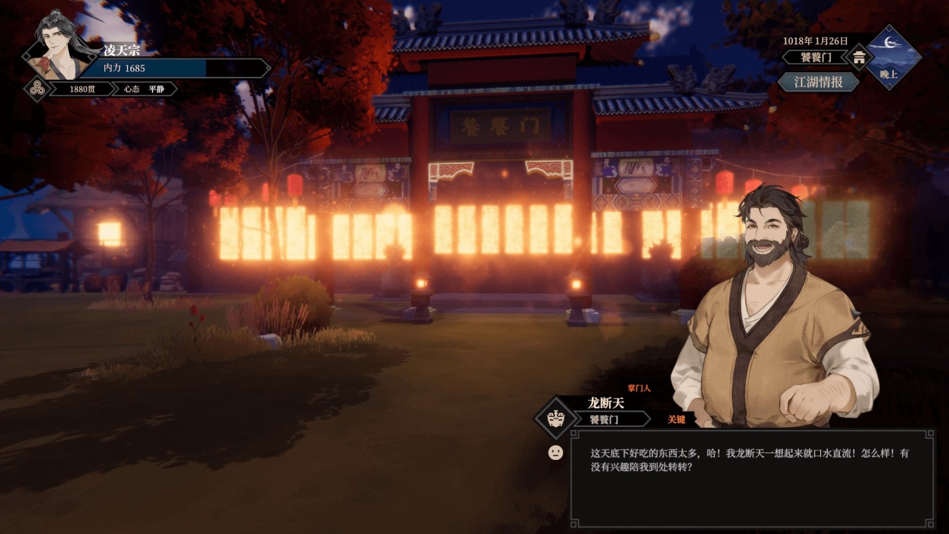 逸态横生的关系互动系统,包括偷窃、下毒、切磋、拜师、偷师、劫杀、下厨、宴请、共奏、送礼、调戏、告白、结婚等等。