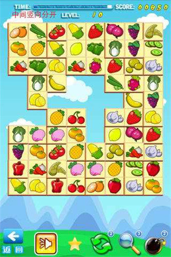 果蔬连连看选关版是一款经典消除类手机游戏,带给你童年回忆的同事也带给玩家经典的消除的玩法,游戏以水果为元素,画面卡通,玩家可以在游戏进行趣味的体验,还有超多关卡等待你去解锁,喜欢这款游戏的千万不要错过。