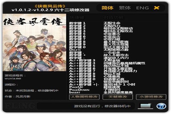 侠客风云传修改器最新版是一款风灵月影制作的多功能修改工具。针对游戏中的各种玩法,提供闪避,反击,移动距离,攻击范围等等内容的修改。在武侠的世界中清空敌人的内力,自己的招式没有冷却,随意释放,直接无敌。喜欢的小伙伴,点击下载吧。