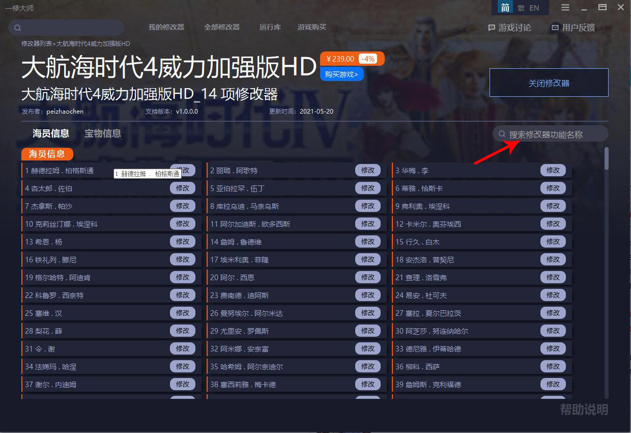 2.海员和宝物数量较多,如果找不到的话可以通过右侧的搜索栏来进行搜寻。