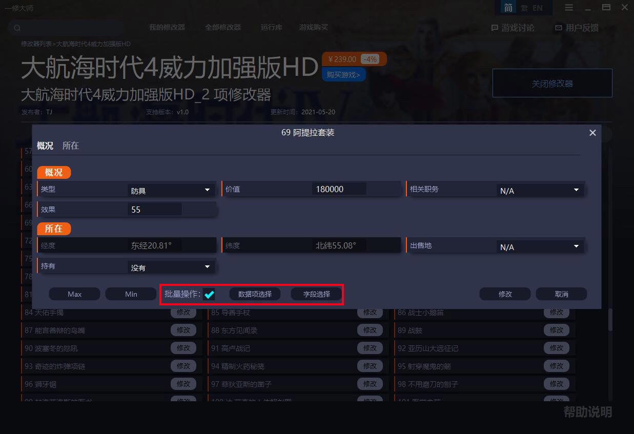 大航海时代4内存修改器是一款可以对游戏进行深度修改的辅助工具。通过功能,可以对游戏中遗迹,城门和教会进行编辑修改。食物数量,资金总数,各种宝石,各种工艺的数量都能编排。喜欢的小伙伴,点击下载感受吧。