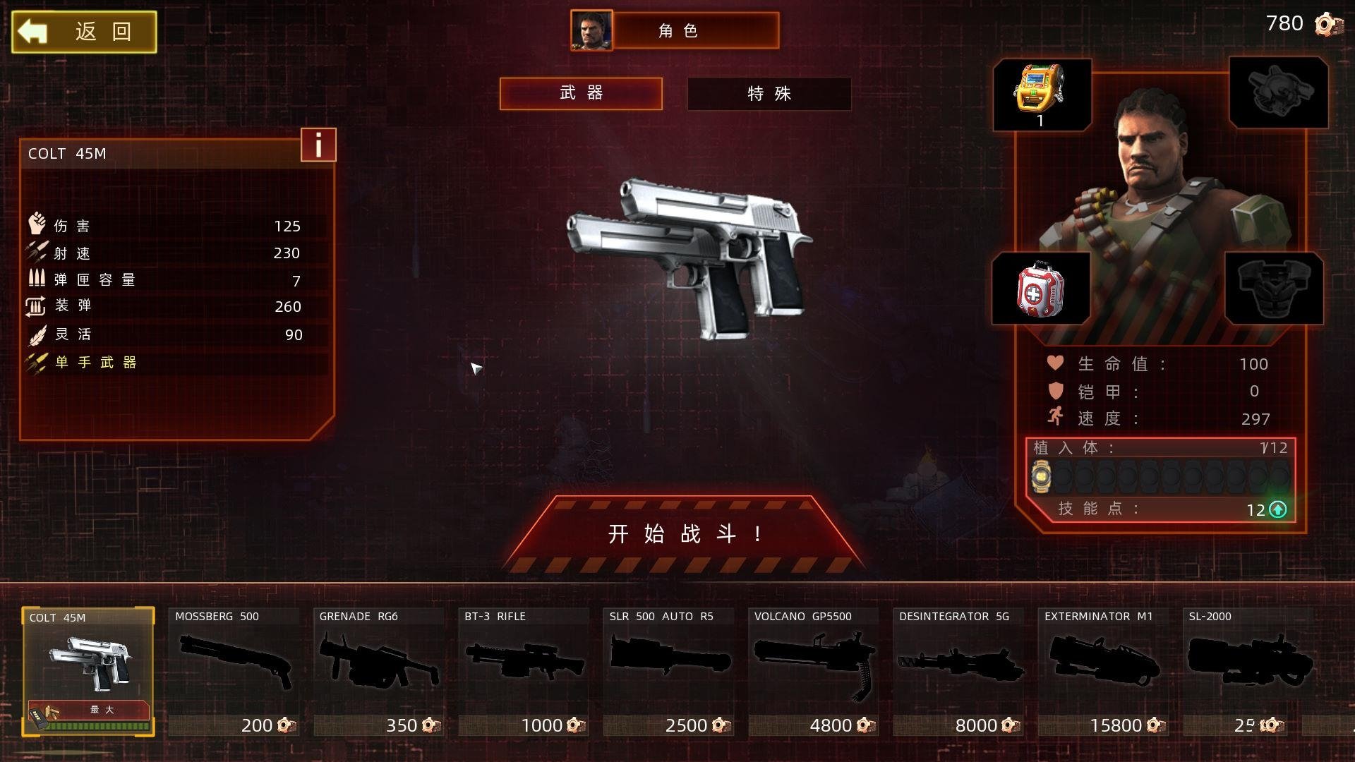 3、游戏的流畅度很棒,画面也是蛮精致的,是不错的游戏。游戏一开始会有选择武器的画面,玩家可以选择自己需要的武器或物品,不过因为刚开始玩,所以所拥有的金钱数很少,可购买的物品也很少。往后进入游戏之后,消灭的怪物愈多,所赚取的钱币也愈多。