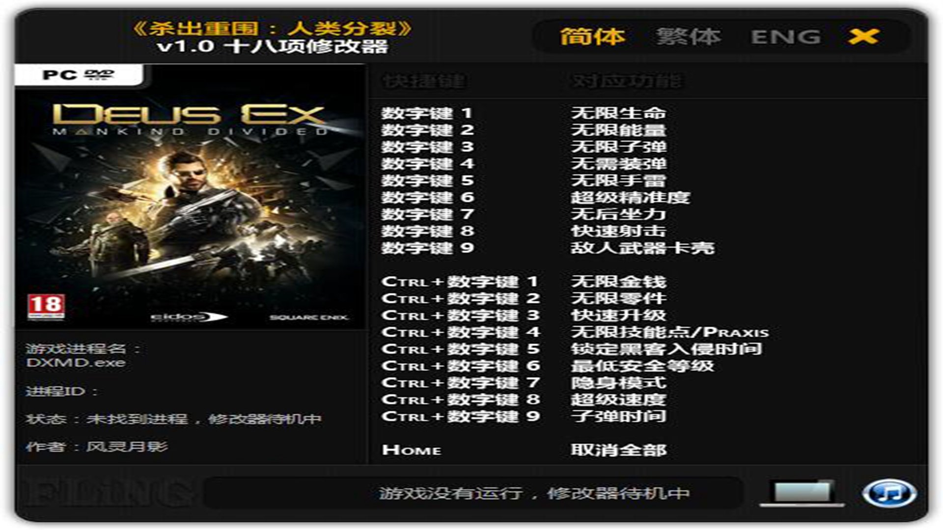 杀出重围人类分裂十八项修改器通过对游戏内容深度的修改,带来不一样的游戏体验。能为玩家带来无限的技能点,隐身模式,子弹时间,超级速度,锁定黑客进攻时间等等。带来不一样的玩法。喜欢的小伙伴,点击下载吧。