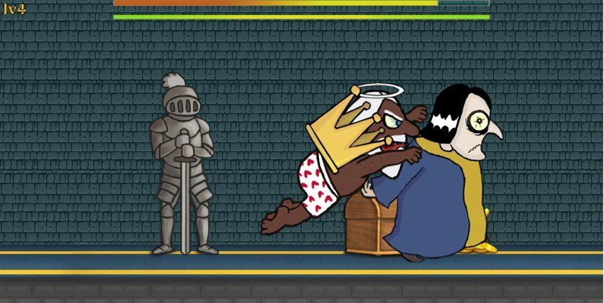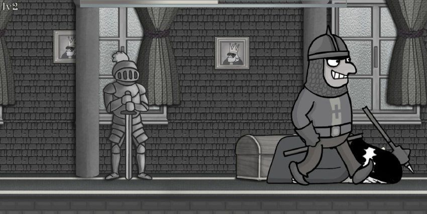 第二关,操作左边的按钮让国王下来,然后过去杀掉国王就可以了。