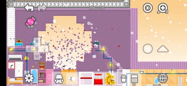 你能够畅游自己创造的世界,比如顺着梯子攀爬,坐在电脑椅上转圈圈,在床上安稳睡觉,或者肆意打滚,将桌上的食物大快朵颐。还能操控风扇、空调、煮食炉、微波炉等各类家庭电器,从扭蛋机里抽取玩具蛋,尽情地打球、投掷,甚至把小鸡、乌龟之类的小动物扔出去。不仅如此,你还可以乘坐观光列车环游世界,要是想去厕所也没问题,只是用完后可一定记得冲厕哦。