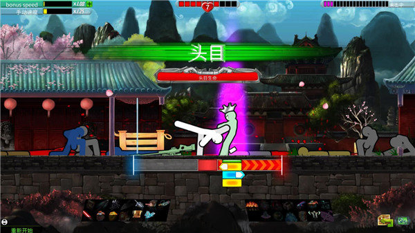 1、和一代一样,游戏核心机制非常简单,整个游戏只用一个鼠标就可以游玩:敌人从左边进入攻击范围时按左键,从右边接近的时候按右键,玩家操纵的火柴人就会自动攻击敌人,按得过早或是过晚都会收到惩罚。