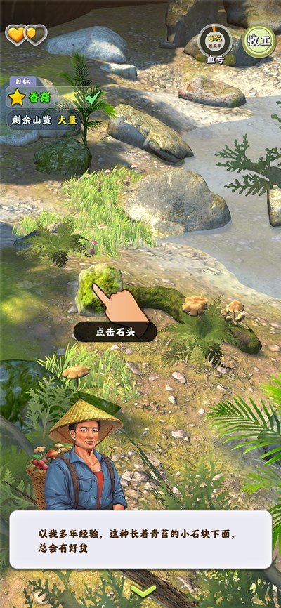 进入游戏后,会有新手提示,提醒玩家如何操作以获得更多的山货出售。