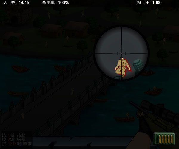 2、开启瞄准器,狙击小日本,狙击手尽量打鬼子狗头,一枪毙敌。