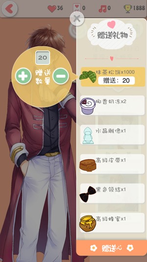 通过解锁甜品,收集足够的材料就可以制作甜品了,抓住男主的喜好,赠送男主喜爱的甜品可以获得额外的分数加成。例如王子喜欢抹茶松饼。