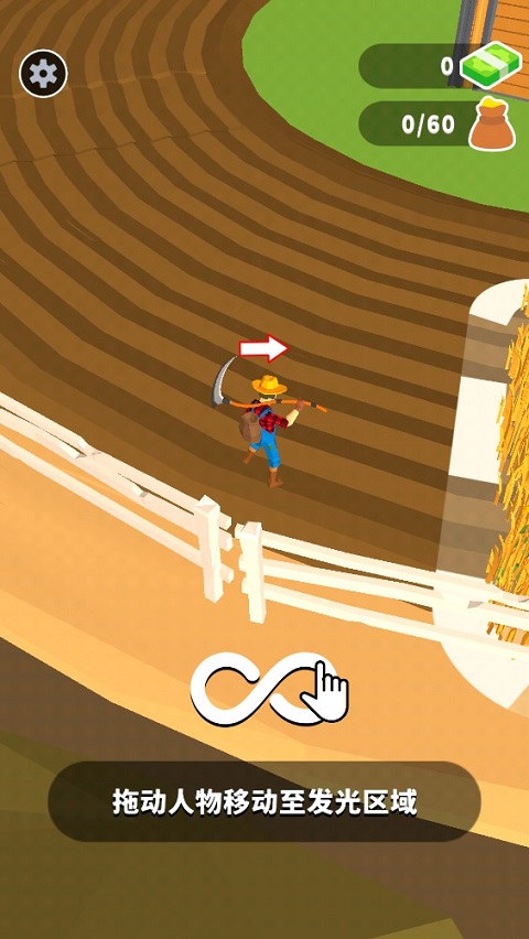 1、该游戏的灵感取材于现实生活里的庄稼收割场景,在竖屏的操作界面风格设定下,玩家能够通过滑动屏幕来操控人物移动。