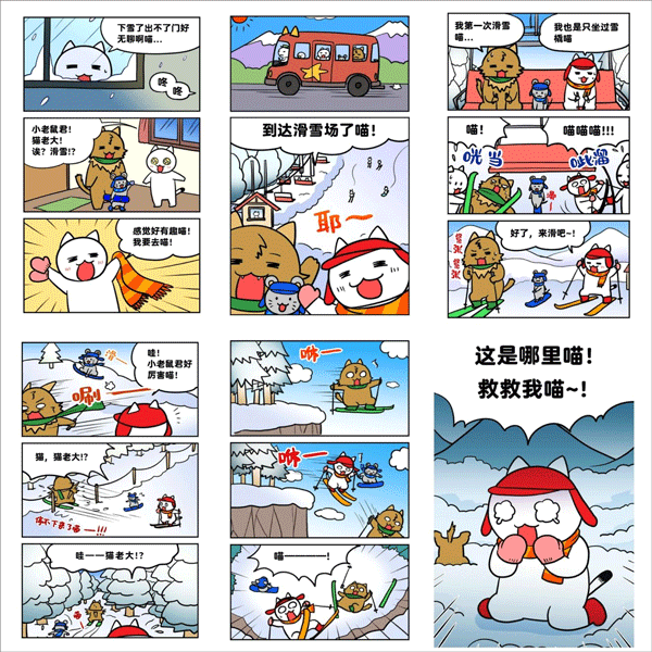 猫老大初次尝试滑雪,根本无法掌控速度,径直朝着悬崖冲了出去!