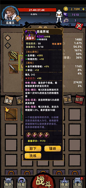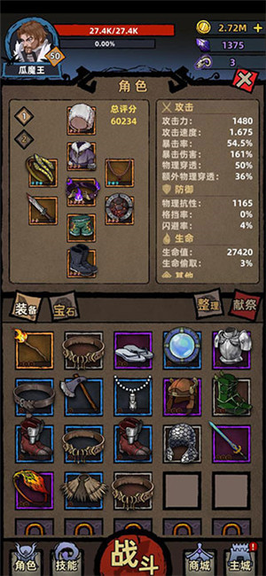 注意,高级别的白装的属性是会超过低级别的橙装的,即等级碾压。所以,级别比较低的时候不用太纠结于高品阶装备,想尽一切办法快速过关,到下一关刷更高级别的装备才是王道。