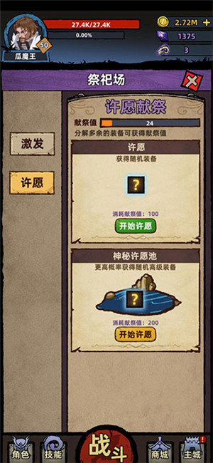 多余的装备该如何处理呢?可以借助献祭功能,把废弃装备转化为献祭值。当献祭池的值满了以后,就能进行一次“神秘许愿池许愿”,随即获取一件高品阶装备,同时献祭池也会被清空。即便池子只有一半的献祭值也能够许愿获取装备,不过并不推荐这样做,最好是攒满能许到品阶更高装备的那档献祭值。