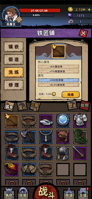 另外,推荐选择附加属性洗,因为核心属性只能洗到核心属性,推荐洗附加属性,可以根据情况选择加幸运、金币掉辐、经验加成等对提高游戏效率的属性。