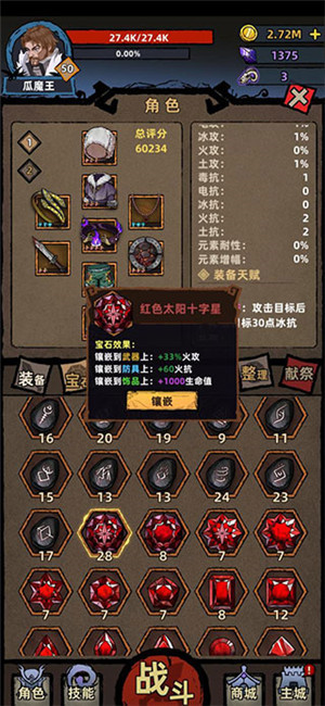 首要原则:一切围绕快速推图展开,力求尽快攻克下一关地图,从而更新更高级别的装备,同时角色升级速度也要尽可能加快。因此,诸如 +经验增幅、+幸运这类属性,要尽可能多获取。此外,多准备一些增加经验增幅、幸运的宝石,镶嵌到饰品上。