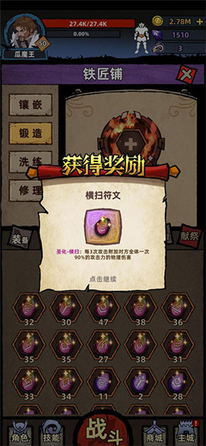 符文级别:符文有3种级别,普通(烙印)、强化(刻印)、圣化(符文)。每3个低级符文可以通过铁匠铺的锻造功能合成高一级别的符文,合成成功率100%。