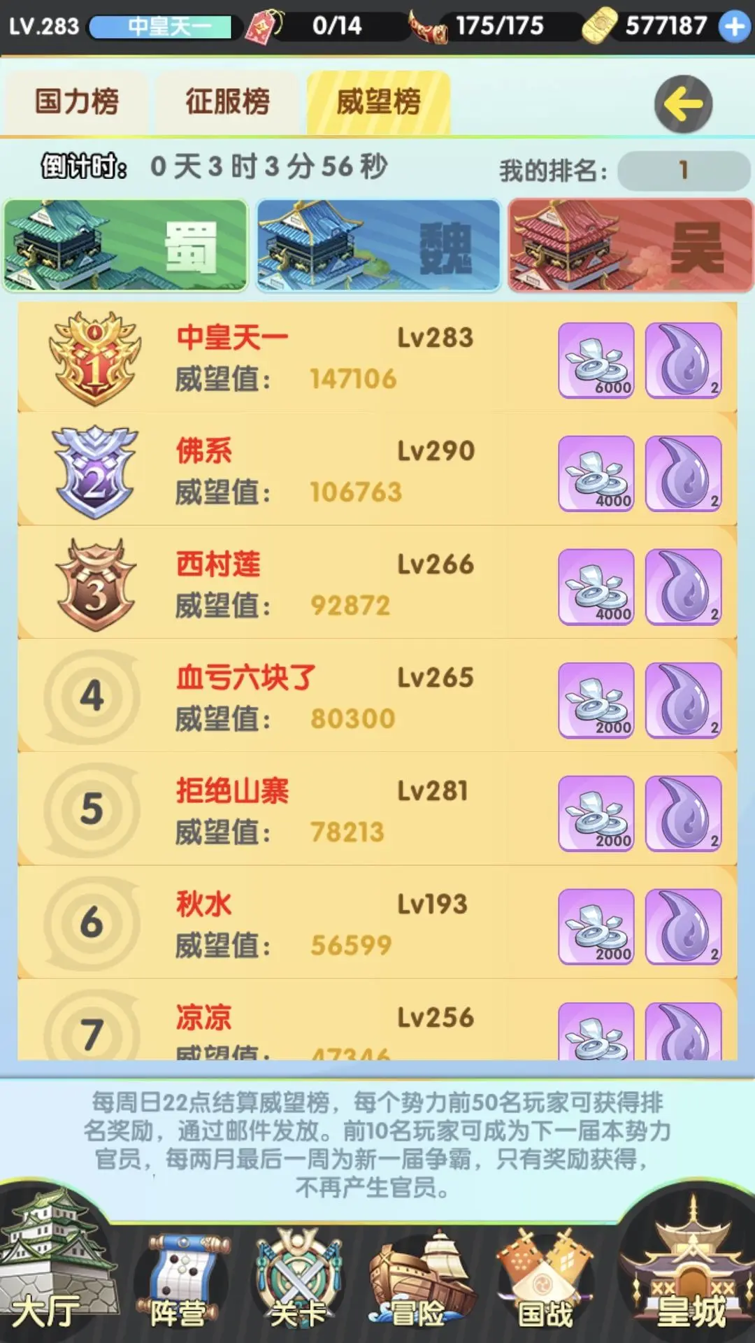 2、周末开的服,比如周六或者周日,尤其是周日,零氪和白嫖也是有机会国战拿国君甚至王者的,只要没有大佬第一时间进来就可以了,看运气;
