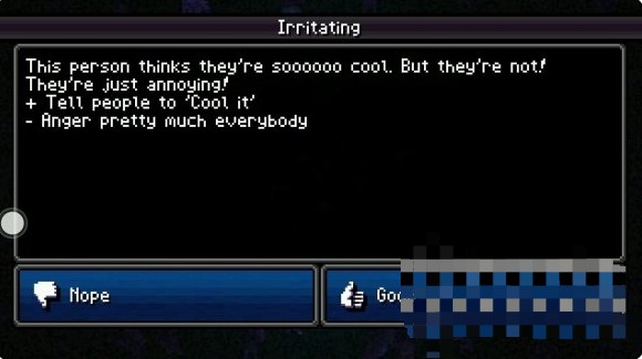 对他人说“cool it”,对NPC也使用“cool it”。在前几次使用时,一定会触发负面事件。而当“cool it”闪光的时候使用,就必定会触发积极事件。