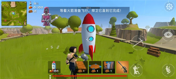 9、利用矿石搭建火箭,等待火箭装配完毕准备飞行,守护它直至飞行完成,如此便可取得胜利。