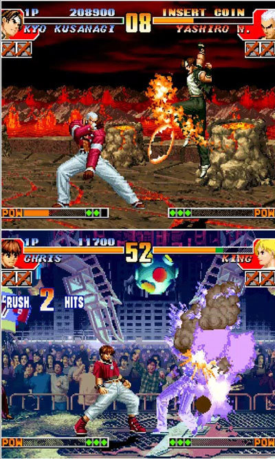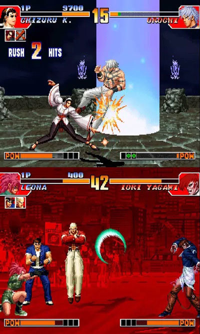 除了草薙京、八神庵、特瑞博加德等玩家耳熟能详的名字外、来自饿狼传说系列的布鲁玛丽、山崎龙二、KOF原创角色七枷社等新面孔也将率队参战。同时,玩家一开始就可以使用NEOGEO版中的隐藏角色[暴走八神庵]和[觉醒莉安娜],当然,作为KOF的特色之一,信息量巨大的赛前斗嘴内容让任何角色之间的对战都不会冷场。