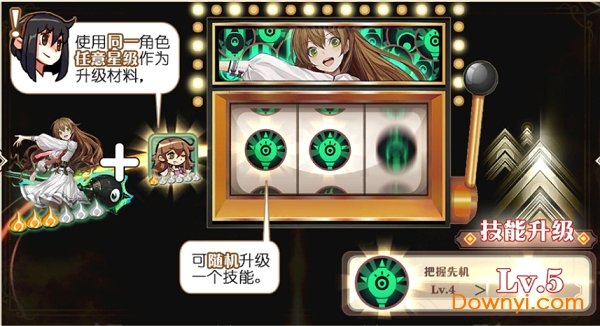 而使用同一角色任意星级作为升级材料的话,会随机当前卡牌的一个技能。