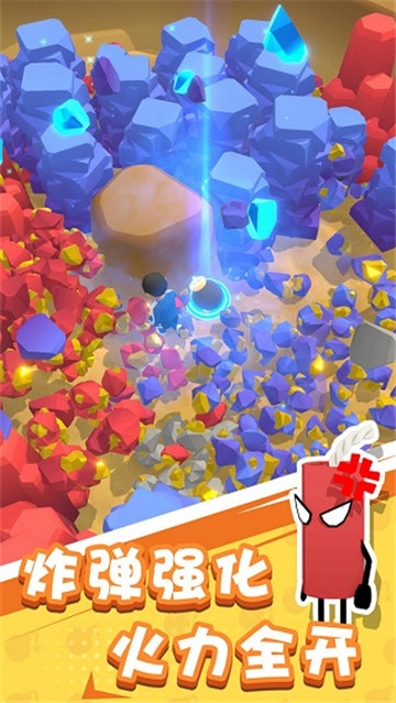 3、炸山不仅是简单的破坏,还伴随着资源的收集。山体被炸碎后,会掉落各种珍贵的矿石、宝石等资源,玩家可以收集这些资源用于解锁更高级的炸弹、升级角色能力或者购买游戏中的道具。