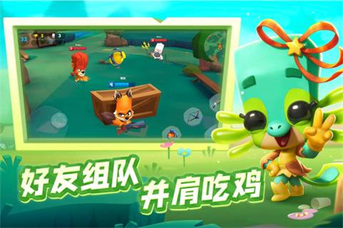 2、画面风格清新:游戏采用清新可爱的卡通画风,将各种动物形象生动地展现出来。地图场景色彩鲜艳,给玩家带来舒适的视觉体验,区别于传统血腥暴力的生存竞技游戏风格。