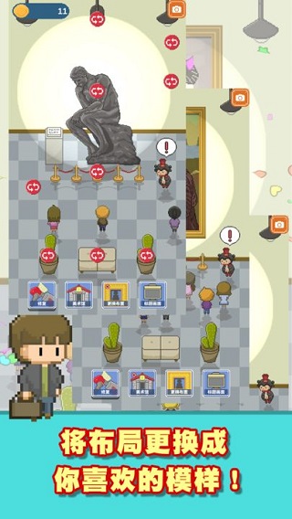 2. 自由经营布局:在这里,你可以充分发挥创意,按照自己钟爱的风格自由布局美术馆。独特的装修风格不仅是个人审美的展现,更是吸引游客的法宝,打造出独一无二的艺术殿堂。