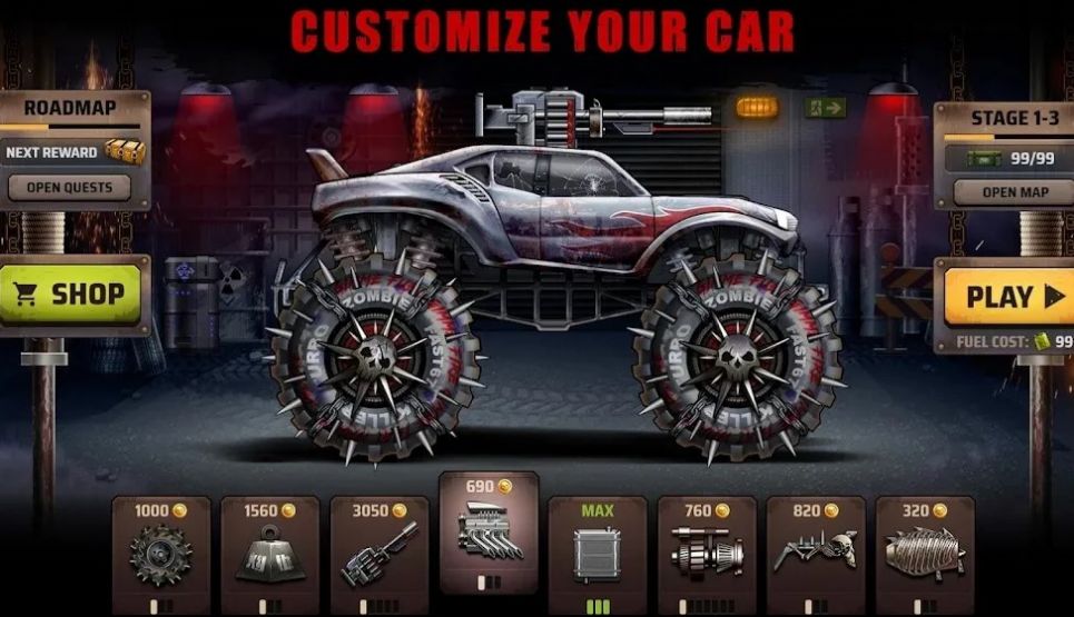 2. 战车性能随心升级:升级战车性能,为玩家在战斗中铸就坚固壁垒。速度的提升,让玩家在僵尸潮中如疾风般穿梭;装甲和耐久度的增加,使战车更能抵御僵尸攻击。每一次升级,都是向胜利迈进的坚实一步。