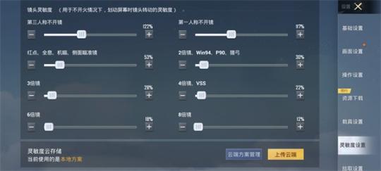 2、镜头灵敏度:第三人称不开镜:122%;第一人称不开镜:117%;红点、全息、机瞄、侧面瞄准镜:53%;2倍镜、win94、p90、猎弓:30%;3倍镜:28%;4倍镜、vss:22%;6倍镜:18%;8倍镜:12%