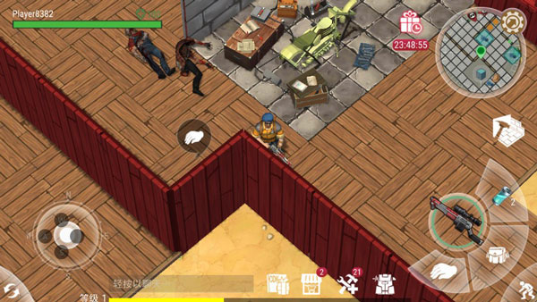 1、下载安装后进入游戏,在手机屏幕左侧可以控制角色移动,