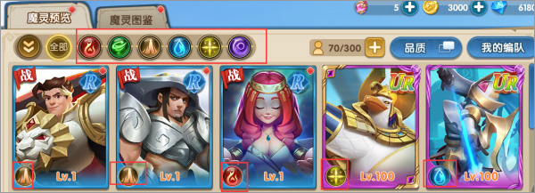 2、玩家在新手阶段的时候,魔灵数量稀少,选择不多,可以暂时先不考虑属性上的克制,可以从阵型入手。