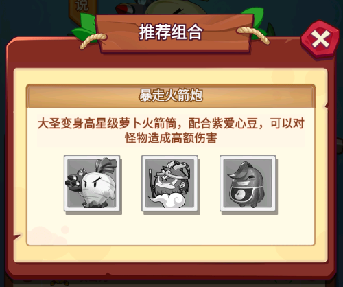 大圣变身高星级萝卜火箭筒,配合紫爱心豆,可以对怪物造成高额伤害。