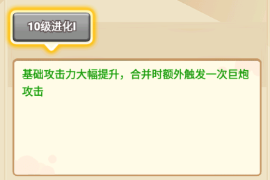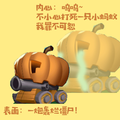 南瓜大炮的基础技能是“合并时对最前方的僵尸发动巨炮攻击,造成高额伤害”。当其等级达到10级,便可开启进化。进化之后,技能效果变为“基础攻击力显著提升,合并时还会额外触发一次巨炮攻击”。