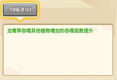 龙噬草的基础技能是“与其他植物合并时,能够吞噬合并目标,被吞噬目标的星级越高,可提升的层数就越多”。当其等级达到10级,便能够进行进化,进化后的技能效果变为“吞噬其他植物时,增加的吞噬层数得到提升”。