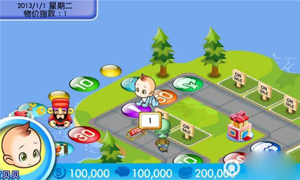 这款游戏主要采用掷骰子的方式进行,玩家在游戏过程中会途经各类土地、商店、银行以及彩票点。玩家要想成为最终的大赢家,就得通过购买房产,收取对手经过自己房产时的路费与租金,同时巧妙利用游戏中的各种道具和卡牌,使对手彻底“身无分文”。