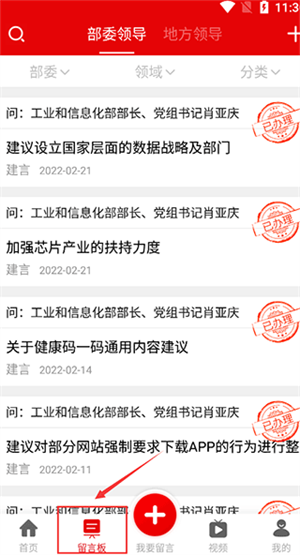 在留言板首页导航条选中“留言”按钮,进入留言页面,选中您所在的省区市,并选择您希望沟通的领导姓名,进入相应版块后,即可进入留言界面。