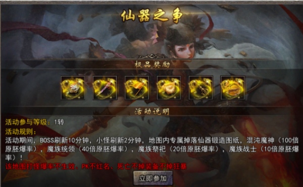 此地曾是一场大战的遗址,盘踞于此的怪物寻觅到诸多著名仙器的碎片材料。玩家只要击杀这些怪物,就能从中获取仙器的碎片材料,进而激活仙器附身,获取更为强大的力量。
