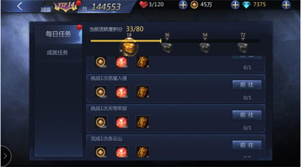 每日任务都是日常玩法中涉及到的,比如:挑战普通副本、精英副本、竞技玩法等,不用担心任务太难而无法完成,做完任务后记得进入任务界面领取奖励哟~~