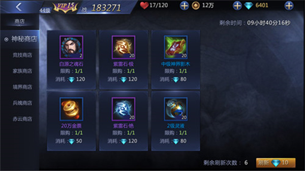 接下来便是商店系统。在这一系统中,神秘商店与境界商店具备金币兑换功能,二者分别消耗神晶与夏族贡献值。神秘商店能够通过刷新重置兑换次数,但此操作需消耗神晶。境界商店则不受此限制,只要贡献值充足,即可进行兑换。