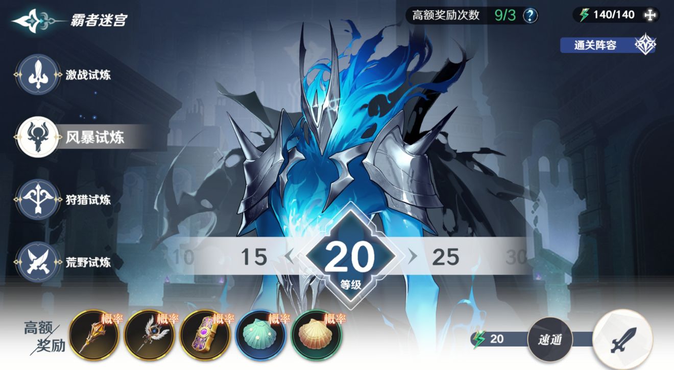 开荒前期,除了主线任务,体力主要消耗在命运回廊、霸者迷宫(产出武器)以及封魔之地(产出刻纹)这三个副本上。1 - 2章的主线整体难度不高,一般不会出现卡关的情况。不过,命运回廊的第二章和第三章,会有1 - 2个BOSS关卡稍有难度,可能会小卡一下。一旦在命运回廊卡住,就需要开始刷武器本和刻纹本,以此提升角色战斗力。