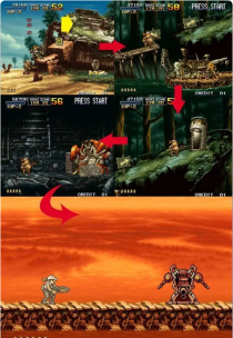 玩家在第一个分支选择下面,然后在第二个分支选择第二个入口。这里应该是难度最大的场景了吧!其中出现的红色鬼子不但会砍人,还会自爆。一旦遇到成群出没的红色鬼子,整个屏幕将避无可避。