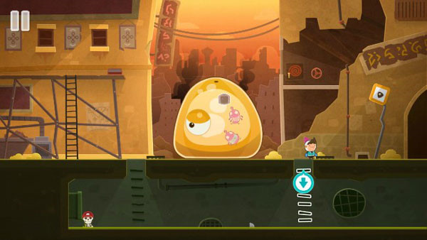 8、然后玩家需要爬到史莱姆身上,并转动消防管道的阀门来冲击史莱姆的身体。