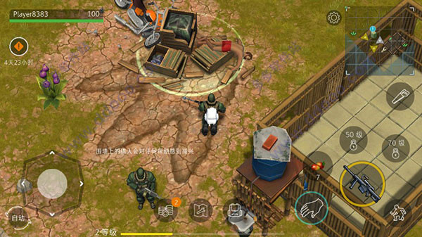 3、游戏中充满了危机,但是抢夺物资和武器是必须的,维持自身的健康状态