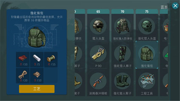 2、在制作栏的中间位置,便能看到吉普车。然而,要解锁这一制作栏,等级需达到17级。制作吉普车所需材料为:20个铁棒、15个松木板、10个精致的竹子、10个皮革、15个螺栓以及10个强力胶布。