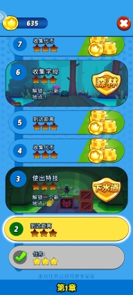 6、当玩家顺利通过第一关,便能解锁并查看后续关卡,而且每个关卡的场景主题皆不相同。