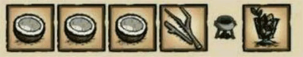 用价格低廉的材料就能制作出的回血食物,只需3个水果搭配1根树枝。水果不局限于椰子,香蕉、石榴、西瓜等都可以,不过浆果除外。当缺少食物时,这类食物可以勉强充饥。在海难场景中,多数食物都偏向于有回血功效。